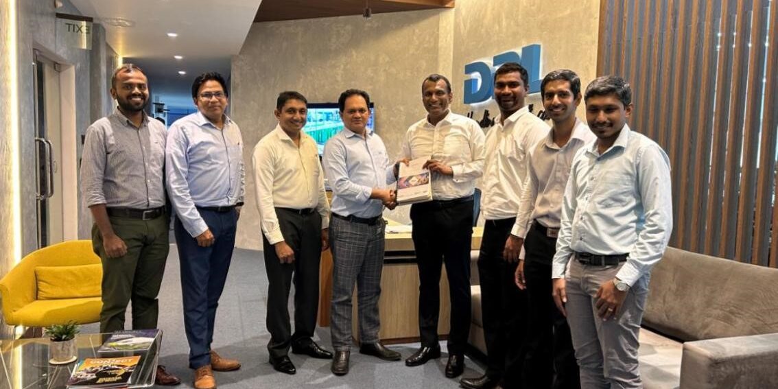 From left – Shamika Gamage (Executive) , Chandika Rathnasiri (Director – Engineering) and Indika Kulathunga (Director – Sales & Marketing), stand alongside Pushpika Janadheera (Managing Director of DPL), joined by Hasith Prematillake, (Managing Director of Hayleys Fentons), Roshane Perera (Executive Director and CEO of Hayleys Solar), Heshan Kathriarachchi (Assistant General Manager of Engineering Sales at Hayleys Solar), and Nisala Amarasekara, (Assistant General Manager of Corporate Projects at Hayleys Solar) to commemorate the signing of the agreement for a 1MW solar installation.